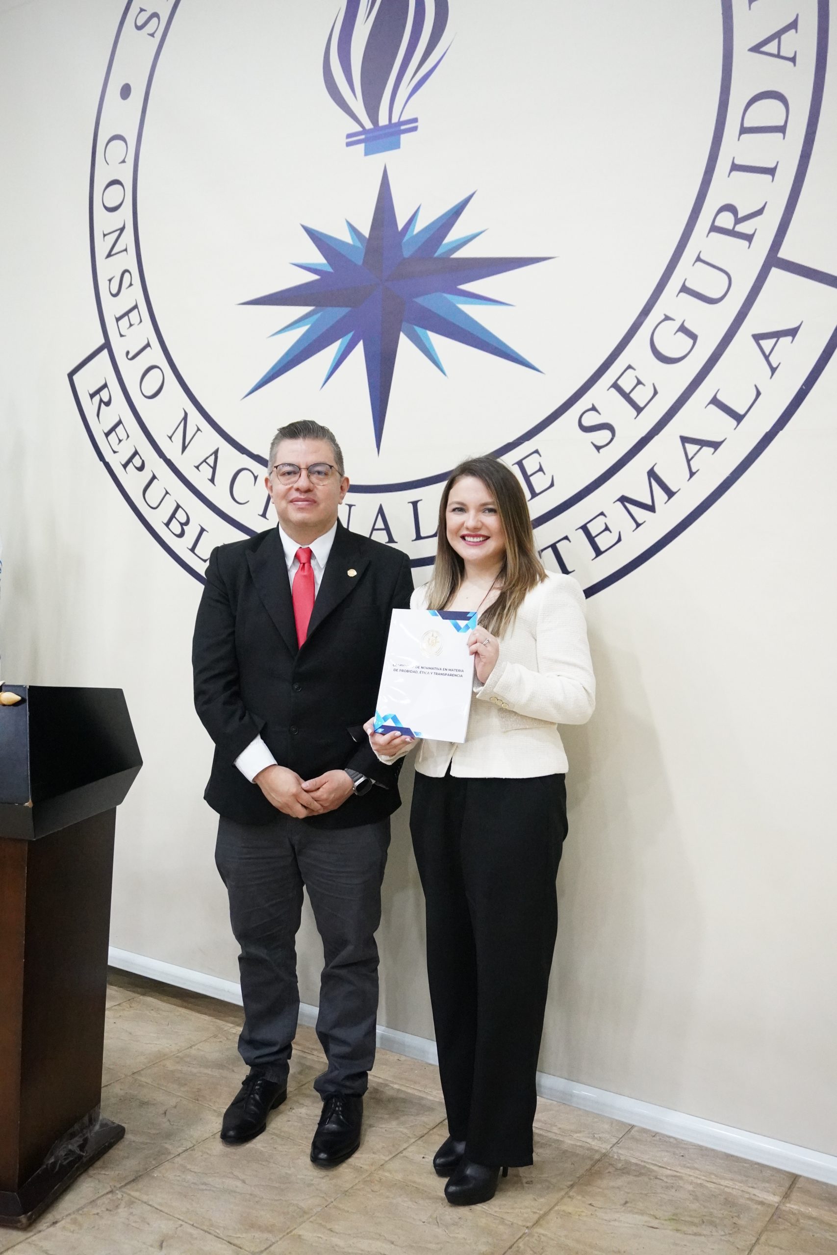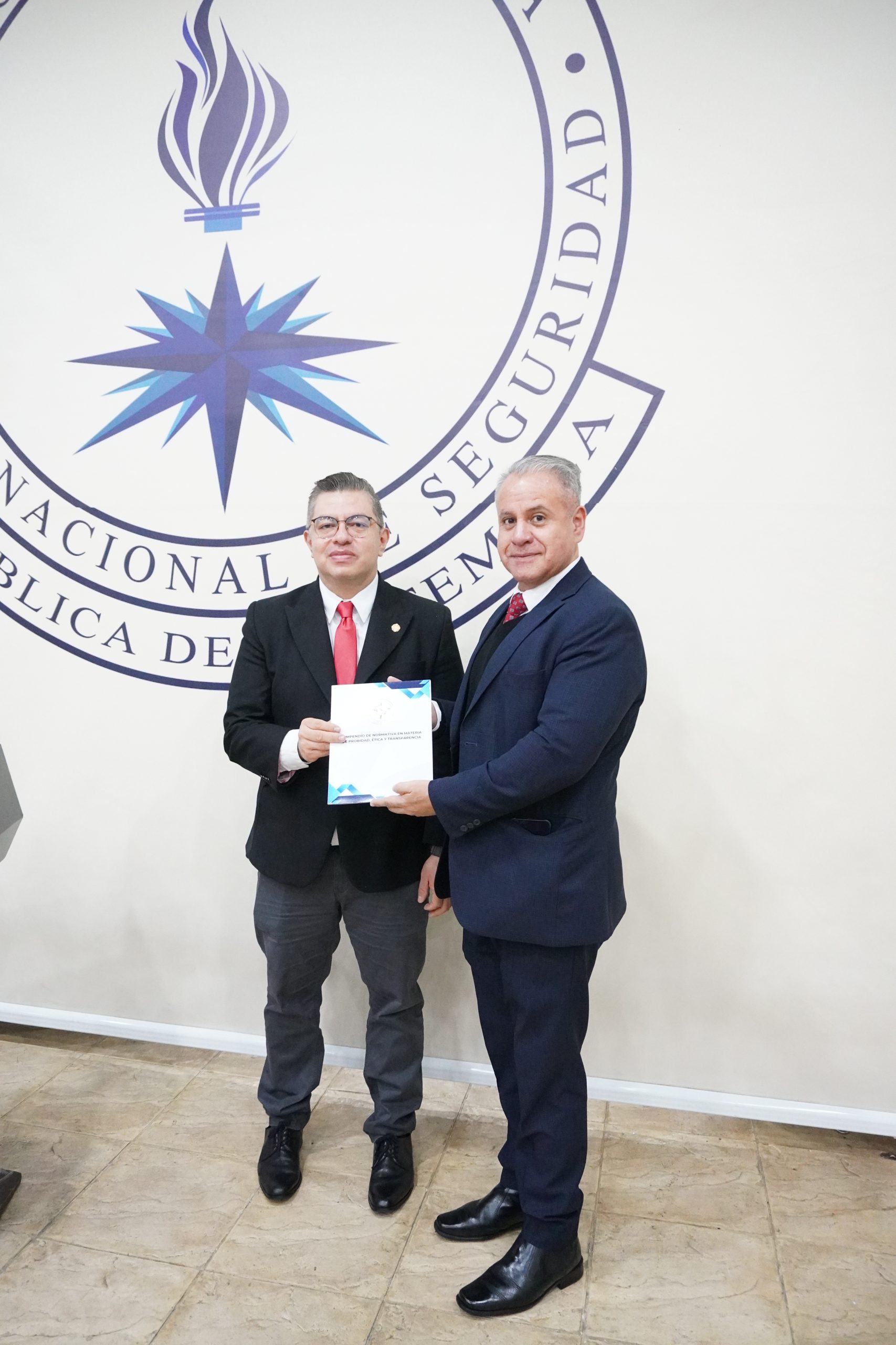 Con el propósito de implementar acciones concretas para construir una cultura de integridad institucional y promover una gestión pública con enfoque en rendición de cuentas, con el liderazgo ético de nuestra máxima autoridad, el Dr. Carlos Humberto Castellanos Morales, Inspector General del Sistema Nacional de Seguridad, hace entrega del compendio en materia de ética a: